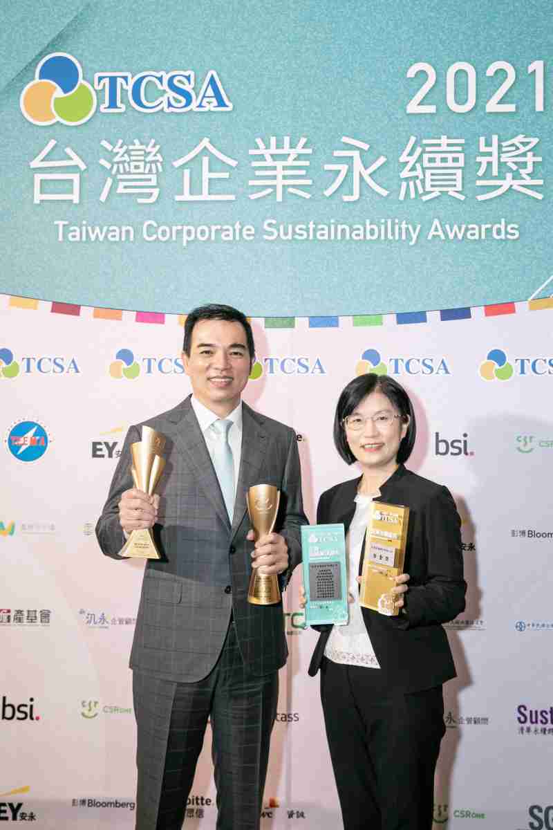 达在台湾永续奖所评比环境、、社会、、、治理等各面向的永续绩效均获高度肯定 (左:28国际光电总经理暨营运长柯富仁,,,右:28国际光电永续长古秀华)