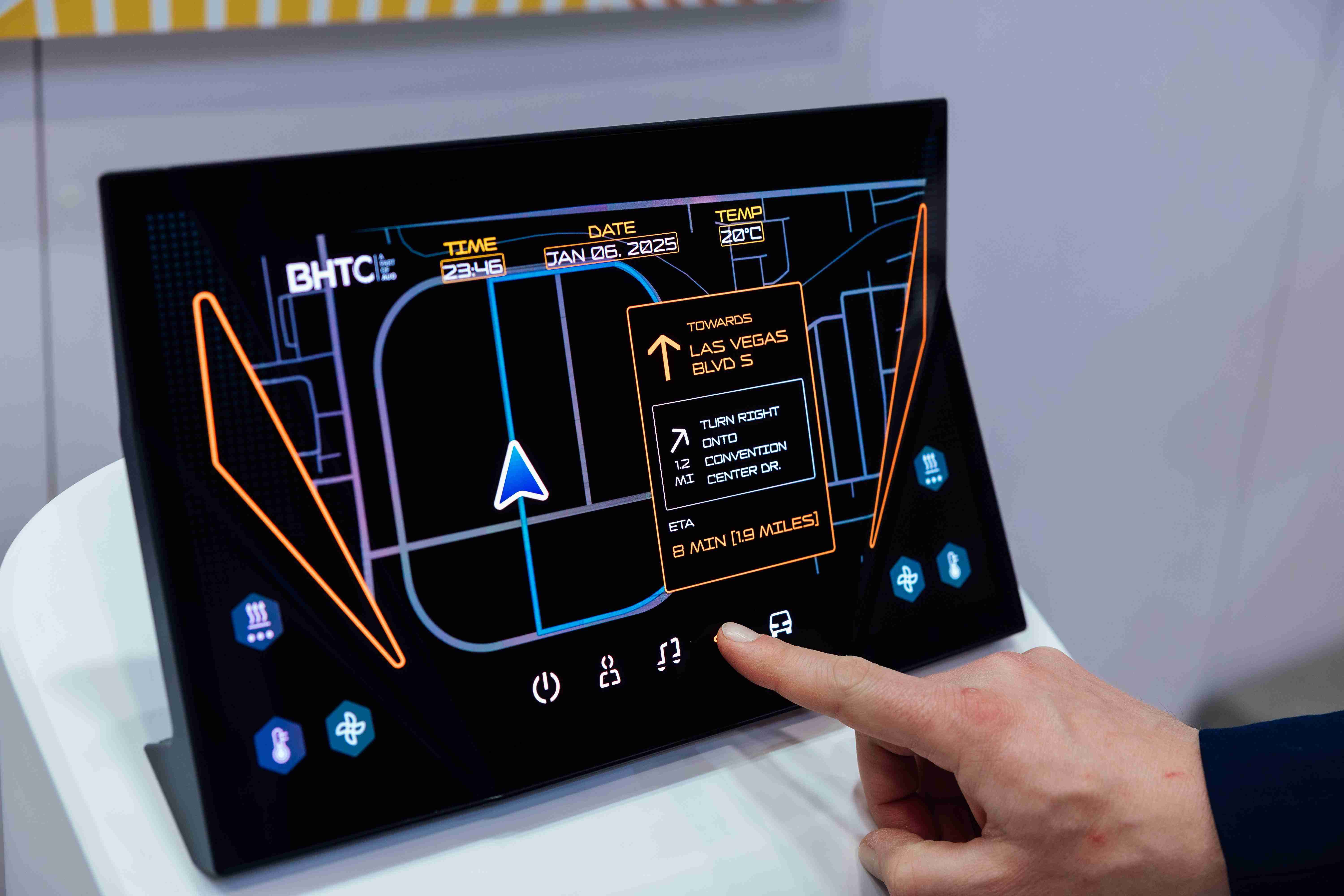 Micro LED可折迭触控显示器(Haptifold Display)结合BHTC多年HMI设计经验,,,,整合中控台和温度控制功能,,以优美的曲面和独特的外型助力车内设计美学,,,,在辅以触控回馈下,,,为驾驶带来更直觉的使用体验。。。