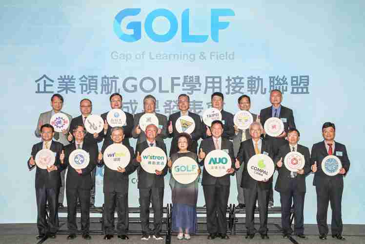 GOLF学用接轨联盟集结企业和学校的力量,,打造「学用合一、、、、产学接轨」的创新合作平台 (前排左起:淡江大学副校长何启东、、、、元智大学校长林启瑞、、纬育执行长许延岳、、纬创总经理暨执行长黄柏漙、、、教育部政务次长范巽绿、、28国际董事长暨执行长彭双浪、、、、仁宝总经理暨执行长翁宗斌、、、、大同大学校长何明果、、、、圣约翰科大校长艾和昌;后排左起:明新科大校长林启瑞、、、、龙华科大校长葛自祥、、、、台湾科大校长廖庆荣、、、中兴大学副校长郑政峯、、中央大学校长周景扬、、、台北科大副校长任贻均、、、中华科大副校长石大明、、、、明志科大校长刘祖华)