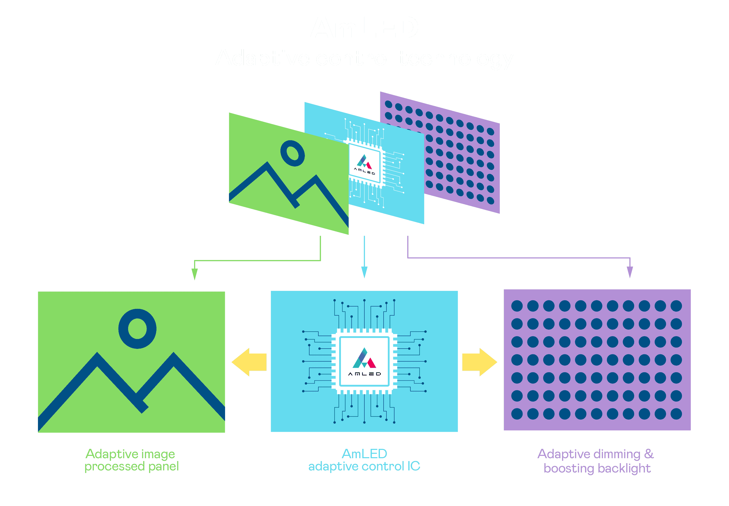 AmLED 具备更省电与低蓝光特性。。。与一般的 LED 背光显示技术相比,,,由于 AmLED 常时处于局部调光状态,,,其功耗仅有前者的 50% 左右,,,同时 AmLED 还具备低蓝光特性,,,满足长时间使用的护眼需求。。。。